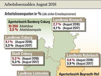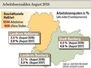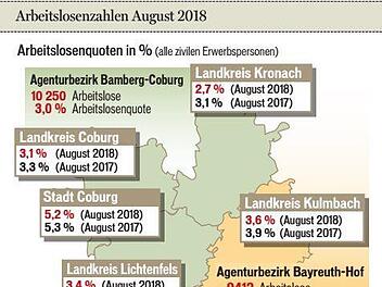 Bad KissingenArbeitsmarktAnstieg der Arbeitslosigkeit im Ferienmonat AugustDie positive Entwicklung am Arbeitsmarkt der Region Main-Rhön setzte sich auch im Ferienmonat August fort. Mit 3,0 Prozent wurde die niedrigste Quote in einem August erreicht. Gegenüber dem Vormonat h... 30.08.2018