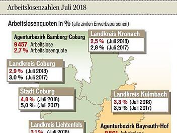 KulmbachBeschäftigungArbeitslosigkeit steigt zum Ferienstart leicht anIm Landkreis Kulmbach ist die Zahl der Arbeitslosen im Landkreis Kulmbach saisonbedingt leicht gestiegen. 31.07.2018