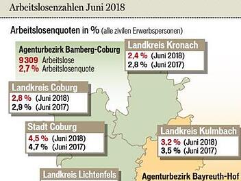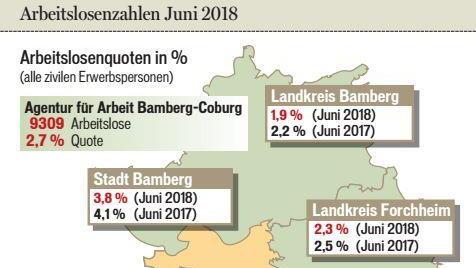 BambergPositiver Trend hält anDie Arbeitslosigkeit ist im Juni im Agenturbezirk Bamberg-Coburg auf 9309 Personen gesunken. Ein historischer Tiefstand, wie die Statistiker berichten. 29.06.2018