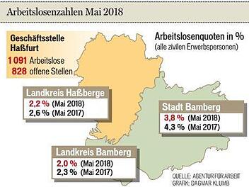 BambergArbeitsmarktArbeitslosenquote ist weiter auf SinkflugWeiter erfreulich entwickelt hat sich im Mai der Arbeitsmarkt. "Die Frühjahrsbelebung am Arbeitsmarkt war in diesem Jahr bereits Ende April so gut wie abgeschlossen. Der Rückgang der Arbeitslosigkeit ... 30.05.2018