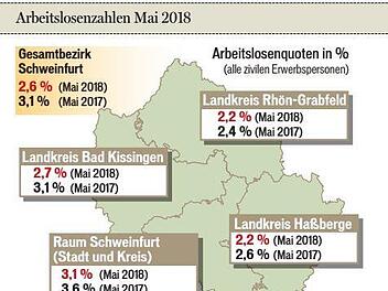 KronachArbeitsmarktNur noch 946 Menschen sind arbeitslosDer Aufschwung setzt sich auch im Wonnemonat Mai fort. Die Beschäftigungslosigkeit sank im Landkreis Kronach im Mai um 78 Personen oder 7,6 Prozent. Das ist der stärkste Rückgang unter allen Kreisen u... 30.05.2018