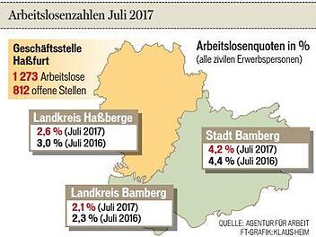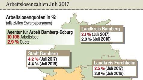 LKR ForchheimEs bleibt im Sommer bei VollbeschäftigungTrotz des jahreszeitlich bedingt leichten Anstiegs der Beschäftigungslosigkeit blieb die Arbeitslosenquote im Agenturbezirk Bamberg-Coburg im Juli unverände... 02.08.2017