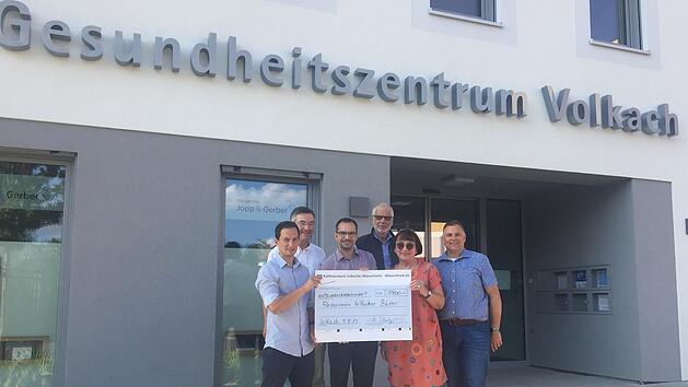 Volkach1700 Euro für das Volkacher Freibad gespendetDer Förderverein Volkacher Bäder e. V. freute sich über eine Spende in Höhe von 1700 Euro, die von Familie Unger im Rahmen der Eröffnung des Volkacher Gesundheitszentrums übergeben wurde. Helmut Unger hatte die Eröffnung des Gesundheitszentrums unter das Motto „Jeder Euro für das Freibad“ gestellt. Die Mitglieder des Fördervereins halfen bei der Einweihung des Gesundheitszentrums mit und übernahmen das Verkauf von Bratwürsten und Getränken an zahlreiche Besucher und Gäste. Darüber hinaus rundeten Helmut und Johannes Unger die Spendensumme auf. In Absprache mit den Bademeistern der Stadt Volkach und den Fördervereinsmitgliedern soll das Geld als weiterer Baustein für die Ausstattung im Freibad verwendetwerden. Es wird in ein Spielgerät investiert, welches sowohl im Hallenbad als auch im Freibad eingesetzt werden kann. Im Bild:Johannes und Helmut Unger, Cengiz Zarbo, Dr. Richard Dietz, Maria Goodwin und Heiko Bäuerlein bei der Spendenübergabe. 16.08.2019