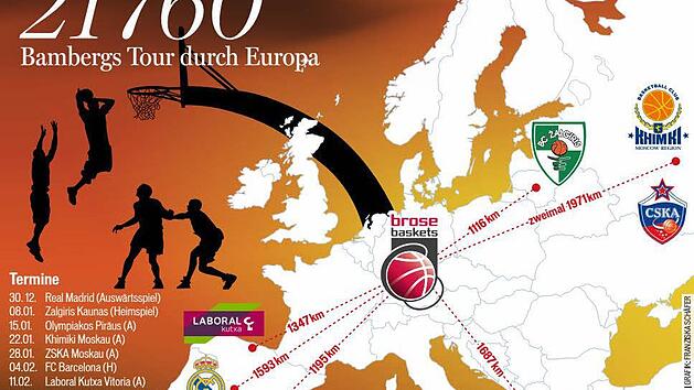 BambergBasketballEuropa-Reise der Brose Baskets beginnt in MadridZum Auftakt der Top-16-Runde sind die Brose Baskets beim amtierenden Euroleague-Champion Real Madrid gefordert. Die Bamberger sind in ihrer Gruppe die einzige Mannschaft, die noch keinen europäischen Titel gewonnen hat. 29.12.2015