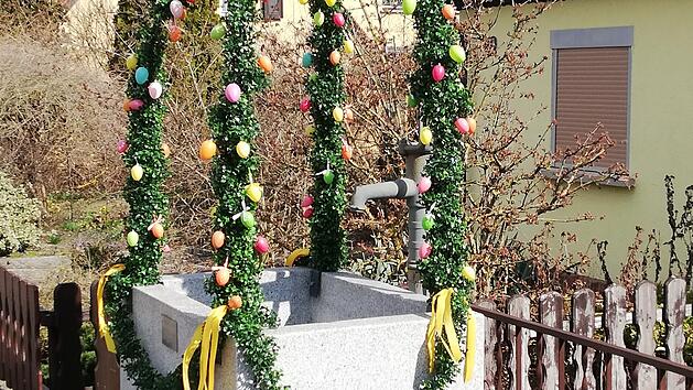 KitzingenSiedler schmücken ihren BrunnenDie Siedlervereinigung Kitzingen hat anlässlich des bevorstehenden Osterfestes unter Einhaltung der Corona-Vorschriften ihren Osterbrunnen im Texasweg wieder aufgestellt und geschmückt. 2 26.03.2021