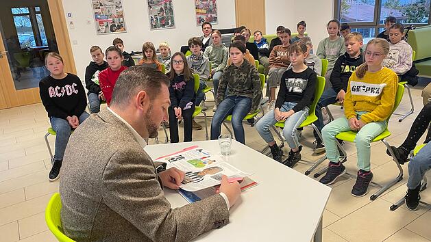 DettelbachBürgermeister als VorleserNoch nie war Lesen so wichtig! Gemeinsames Vorlesen verbindet nicht nur und schafft Nähe – Vorlesen ist auch die wichtigste Voraussetzung, um selbst gut lesen zu lernen und damit der Schlüssel für den Zugang zu Bildung und beruflichen Erfolg. Der Bundesweite Vorlesetag, der dieses Jahr am 18. November stattfand, ist Deutschlands größte und bekannteste Vorleseaktion. Dieses jährlich stattfindende Event wurde von der Zeitung "Die Zeit", der Deutschen Bahn Stiftung und Stiftung Lesen initiiert und setzt ein Zeichen für die Bedeutung des Lesens. Der 1. Bürgermeister der Stadt Dettelbach, Matthias Bielek, las den Schülerinnen und Schülern der Klassen 5b und 6a in der Mensa des neuen OGS-Gebäudes aus einem Buch über Helden und Heldinnen, das das Jahresthema "Gemeinsam einzigartig" - als Zeichen der Vielfalt unserer Gesellschaft perfekt aufgegriffen hat, vor und diskutierte anschließend mit den Kindern über einige "Helden" wie Pelé oder Greta Thunberg. 2 18.11.2022