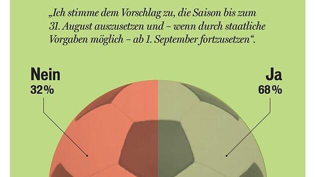 BambergFußballGrünes Licht für BFV: Saison kann fortgesetzt werdenDie Mehrheit der Vereine hat ihre Zustimmung gegeben: Die unterbrochene Saison soll in Bayern ab 1. September fortgesetzt und nicht abgebrochen werden. Im Spielkreis Bamberg/Bayreuth ist die Zustimmung im bayernweiten Vergleich aber gering ausgefallen. 20.04.2020