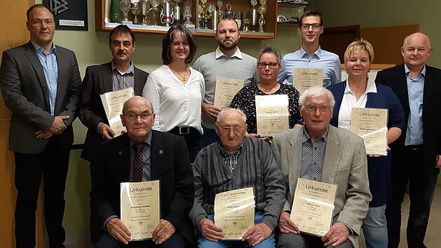 SickershausenGründungsmitglieder für 70 Jahre beim Sportverein geehrtBei der traditionellen Weihnachtsfeier im Sportheim durften sich langjährige Mitglieder über eine Auszeichnung freuen, heißt es in einer Pressemitteilung des Sportvereins Sickershausen. Gemeinsam überreichten der Ehrenamtsbeauftragte und Geschäftsführer Roland Friedel und Vorsitzender Uwe Köhler sowie der stellvertretende Vorsitzende Rainer Spiegel Urkunden und ein Weinpräsent an die Gründungsmitglieder: Heinz Stich, Helmut Marstaller, Rudi Schwarz und Walter Kehrer halten dem Verein seit 70 Jahren die Treue. Ehrungen für 25 Jahre Mitgliedschaft gab es für Tanja Backhaus, Markus Dürr, Alexandra Köhler und Steven Mezo mit einer Urkunde und der Silbernen Ehrennadel. Für 30 Jahre Mitgliedschaft bekamen Martin Fink, Sabine Wagner und Roland Friedel eine Urkunde mit Weinpräsent. Für 60 Jahre Mitgliedschaft wurde noch Fritz Benner geehrt. Die Vorstandschaft bedankte sich besonders noch bei Heidrun Müller, die vor kurzem erst für ihre über 12-jährige ehrenamtliche Tätigkeit vom DFB im Schloss Rimpar ausgezeichnet wurde. Die Weihnachtsfeier wurde umrahmt mit einer Weihnachtsgeschichte vom Ehrenvorsitzenden Herbert Köhler. 20.12.2019