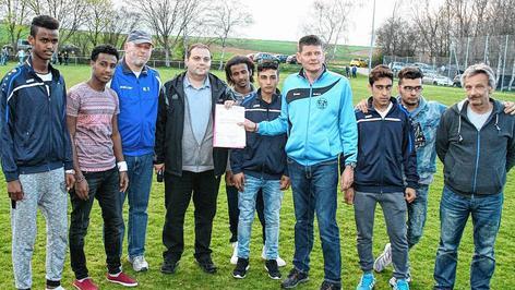 MarktbreitFlüchtlinge zum Mitspielen animiertJunge Syrer, Afghanen oder Somalier sind herzlich willkommen bei der FG Marktbreit/Martinsheim – das erkennt auch der DFB mit einem kleinen Scheck an. 15.04.2016