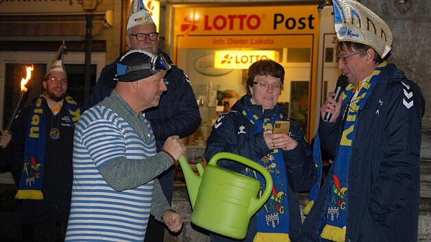 KitzingenWitziger Vorschlag der Kitzinger Narren: Kostenlose Gummistiefel für alle, die am Bleichwasen parkenDas Rathaus gestürmt und OB Stefan Güntner gefesselt hat die Kitzinger Karnevalsgesellschaft KiKaG. Nicht nur über die Verkehrssituation in Kitzingen machten sich die Narren lustig. 3 14.11.2024