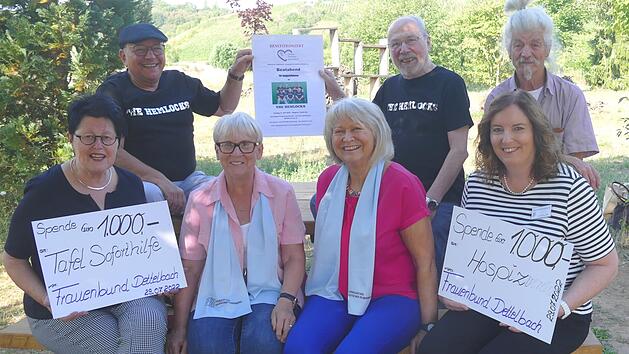DettelbachMusiker und Frauenbund spenden an Tafel und HospizvereinAls der Katholische Frauenbund Dettelbach (KDFB) sein 100-jähriges Bestehen feierte, hatte er beim Dettelbacher Künstler Roger Bischoff bereits eine massive Holzbank mit Tisch als Spende für den Skulpturenpark in Auftrag gegeben. Im Skulpturenpark sieht Bischoff einen Kulturgarten für kulturelle Veranstaltungen nach dem Leitsatz "Bürger für Bürger". 01.08.2022