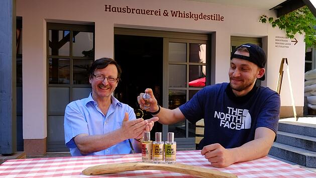 NürnbergDesinfektionErfindung aus Franken: Whisky-Brenner brauen "Anti-Corona-Spray"Hygiene mit Duft und Stil: Mit ihrem weltweit wohl einzigartigen Bio-Desinfektionsspray wollen Reinhard und Max Engel von der Nürnberger Hausbrauerei und Whiskydestille „Altstadthof“ mit Malz-Power von Bio-Flavour den Kampf gegen das Coronavirus unterstützen. 11.08.2020