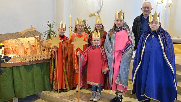 KitzingenSt. Vinzenz freute sich über ihre SternsingerIn der Pfarrei St. Vinzenz Kitzingen-Siedlung ziehen die Sternsinger jedes Jahr von Haus zu Haus. Dieses Jahr erfreute eine kleine Gruppe von sechs Sternsingern in ihren farbenfrohen Gewändern die Gottesdienstbesucher. Zum Ende sprachen sie ihren Segensspruch. Pfarrer Gerhard Spöckl bat alle Besucher den weihnachtlichen Segen in Form von Aufklebern und Kreide für ihr Haus und ihre Wohnung mit nach Hause zu nehmen. Die heiligen drei Könige nahmen nach dem Gottesdienst gerne Spenden für die diesjährige Sternsinger-Aktion unter dem Motto "Gesund werden – gesund bleiben". an. Hocherfreut wurden von den jungen Sternsingern auch Schokolade und Süßigkeiten angenommen und unter sich verteilt. Für nächstes Jahr hoffen alle, wieder von Haus zu Haus ziehen zu dürfen, die Häuser direkt segnen und die Menschen persönlich treffen zu können. 24.01.2022