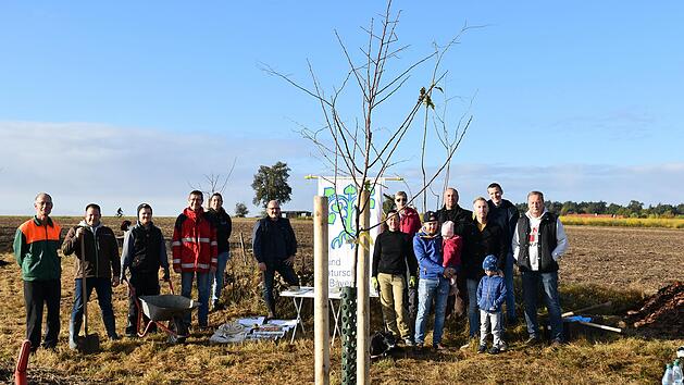 Der Prichsenstadter Stadtrat und Arzt Alexander Schöpfel löste mit der Pflanzung von 17 alten Obstsorten sein Versprechen ein, das er nach seiner Wahl zum Stadtrat gegeben hatte. Für jeden Stadtrat plus Bürgermeister sollte ein Baum gepflanzt werden. Die Ortsgruppe des BUND Naturschutz Wiesentheid-Prichsenstadt-Geiselwind unter der fachlichen Leitung von Dipl.-Ingenieur Norbert Schneider hatte die Bäume beschafft und in einer Gemeinschaftsaktion mit Ratskolleginnen und -kollegen die 17 Bäume gepflanzt, Pflöcke eingeschlagen und die Bäume fachmännisch befestigt. Die Vorarbeit, das Ausheben der Pflanzlöcher nahm der städtische Bauhof vor. Alte Apfel-, Birnen- und Zwetschgensorten sollten es sein. Dazu kommen noch Esskastanien und Speierling. Die Fläche nahe dem Baugebiet Ziegelgärten VI in Prichsenstadt hatte sich angeboten, da sich hier ein Baudenkmal befindet und nicht für eine Erweiterungsfläche des Baugebietes zur Verfügung steht. Norbert Schneider lobte das Engagement Schöpfels und bedankte sich bei allen Helferinnen und Helfern für die tatkräftige Unterstützung. Für die nächsten vier Jahre übernimmt der Bund Naturschutz, die Pflege der Obstbäume, ehe sie in städtischen Besitz übergehen. Bürgermeister René Schlehr, der selbst mithalf, dankte allen Mitwirkenden und sprach die Hoffnung aus, dass sich Nachahmer finden mögen.