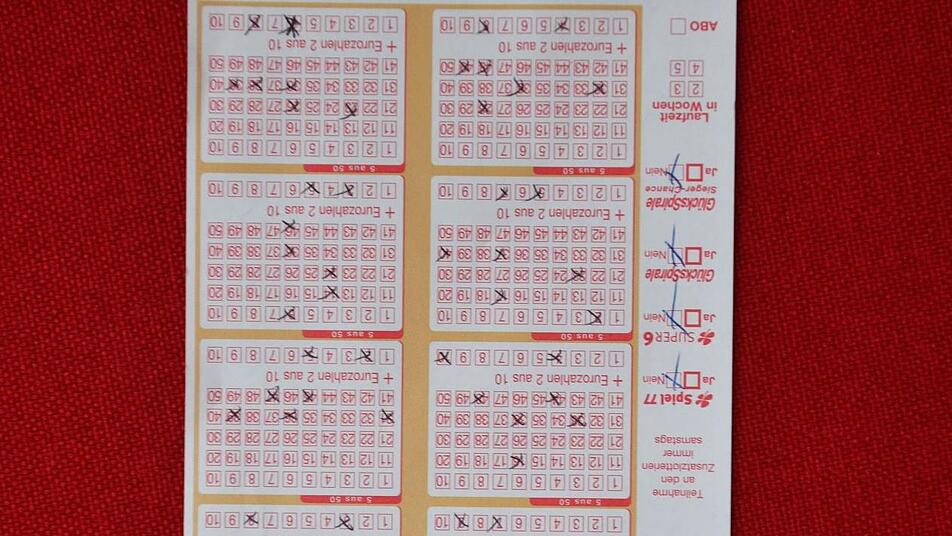 Die Chance auf den Gewinn des Eurojackpots liegt bei 1 zu 95 Millionen. Deutlich geringer sind die Chancen beim klassischen Lotto am Mittwoch und Samstag ("6 aus 49"). Hier steht die Aussicht auf den Jackpot bei 1 zu 140 Millionen.