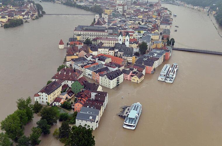 Braune Fluten in weiten Teilen Süd- und Ostdeutschlands: Überlaufende Flüsse fluteten ganze Regionen. Besonders stark betroffen ist Passau. In der Dreiflüssestadt steht das Wasser nach wie vor hoch in den Straßen. Doch das Schlimmste scheint überstanden. Die Wasserstände von Inn und Donau sind bis zum frühen Morgen deutlich gefallen. In Regensburg verschärfte sich die Lage dagegen in der Nacht. Sachsen-Anhalt erwartet im Laufe des Tages sogar eine höhere Flutwelle als beim Jahrhunderthochwasser im Jahr 2002.