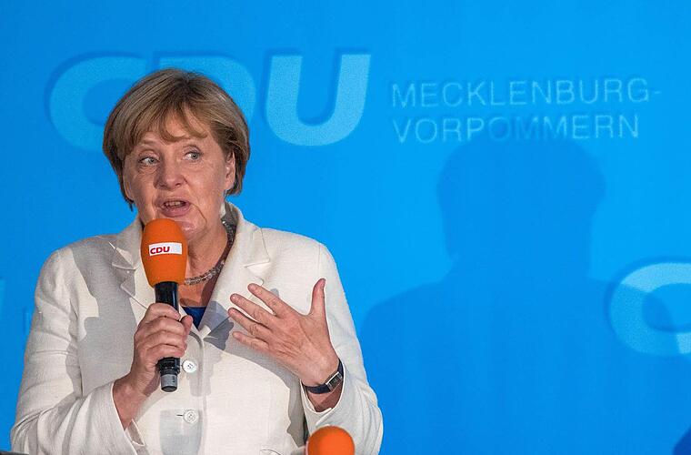 Bei einer Wahlveranstaltung der CDU in Schwerin spricht Merkel davon enttäuschte Wähler zurückzugewinnen. Sie verteidigt dabei auch ihre Flüchtlingspolitik.