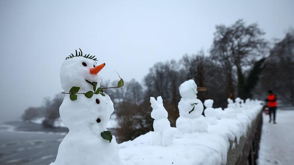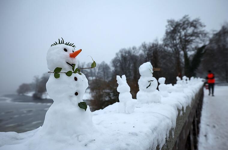 Und im sonst eher schneearmen Hamburg gibt es derzeit an der Alster eine kleine Winterausstellung: Auf der Krugkoppelbrücke und der Fernsichtbrücke haben Passanten eine ganze Parade von Schneemännern aufgereiht. Dutzende weiße Figuren stehen dort nebeneinander – in ganz unterschiedlichen Größen.