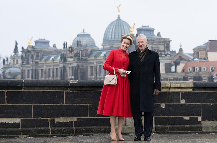 König Philippe und seine Frau Mathilde waren nach einem Besuch der Halbleiterfirma X-Fab am Donnerstagnachmittag in der Dresdner Innenstadt unterwegs. Nach einer Besichtigung der Gemäldegalerie Alte Meister und der Frauenkirche bummelten sie gemeinsam mit Bundespräsident Frank-Walter Steinmeier, Sachsens Regierungschef Michael Kretschmer und deren Frauen über den Weihnachtsmarkt an der Frauenkirche und sprachen mit zahlreichen Passanten.