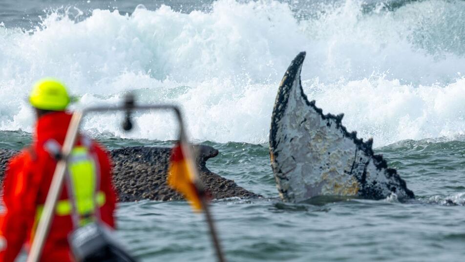 Wie es dem Wal tatsächlich geht, sei sehr schwierig zu beurteilen, sagte Siebert. Das Tier sei noch in einem guten Ernährungszustand, habe aber Hautveränderungen. Je länger es in der jetzigen Position liege, desto schwächer werde es. Momentan sei aber die Einschätzung, dass es noch Lebenswillen habe.
