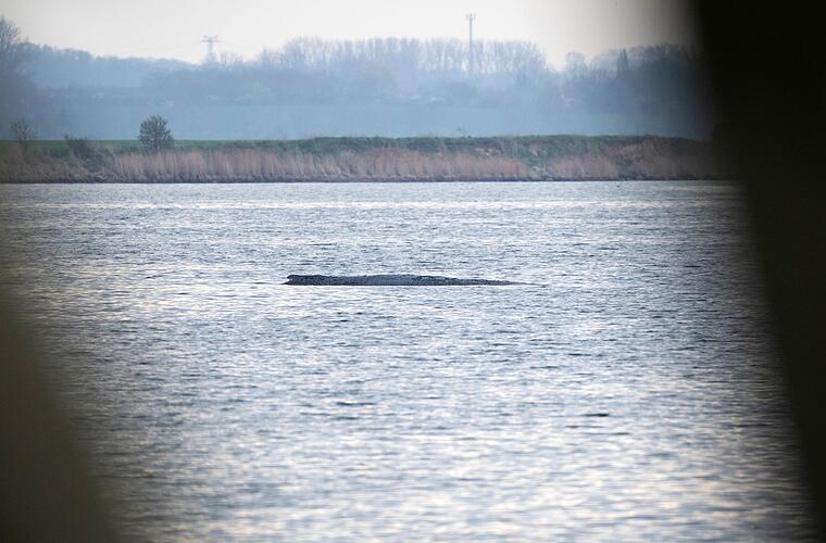 2. April: Ein Vermessungsboot beginnt damit, die Umgebung des Wals zu erkunden, um eine spätere Bergung des Tierkörpers vorzubereiten.