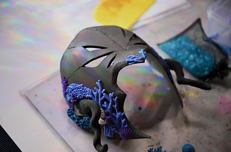Die Utensilien für ihre Basteleien haben sich bei ihr über die Jahre angesammelt: Zahlreiche Pinsel, Stifte und Scheren stehen neben ihrem Arbeitstisch. Ob Ornamente aus Epoxidharz oder Masken aus einer leichten Modelliermasse: Toni fertigt fast alles in Kleinstarbeit per Hand an - wie viele andere Cosplayer. «Bei mir ist es halt so, dass ich eher Nischensachen mache», sagt Toni. «Ich muss fast alles selber machen, weil es das nicht zu kaufen gibt.»