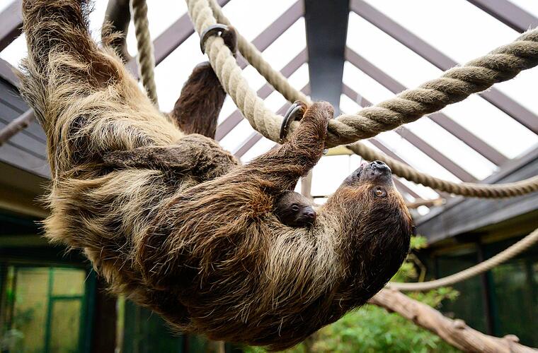 Plötzlich Mama, ohne dass jemand etwas bemerkt hätte: Schon zum zweiten Mal bekommt ein Faultier in Niedersachsen unbemerkt Nachwuchs.