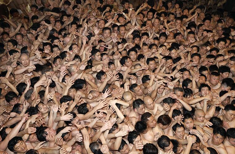 Und so versammelten sich in diesem Jahr ein letztes Mal Horden von fast nackten Männer in eisiger Kälte in dem Tempel. Sie reinigten sich zunächst in einem Fluss und gingen dann zu einer Halle des Heiligtums, wo sie für eine gute Ernte und andere Segnungen beteten, bevor sie dann um einen Hanfsack rangelten, der kleine Glücksbringer enthielt, wie die Zeitung berichtete.
