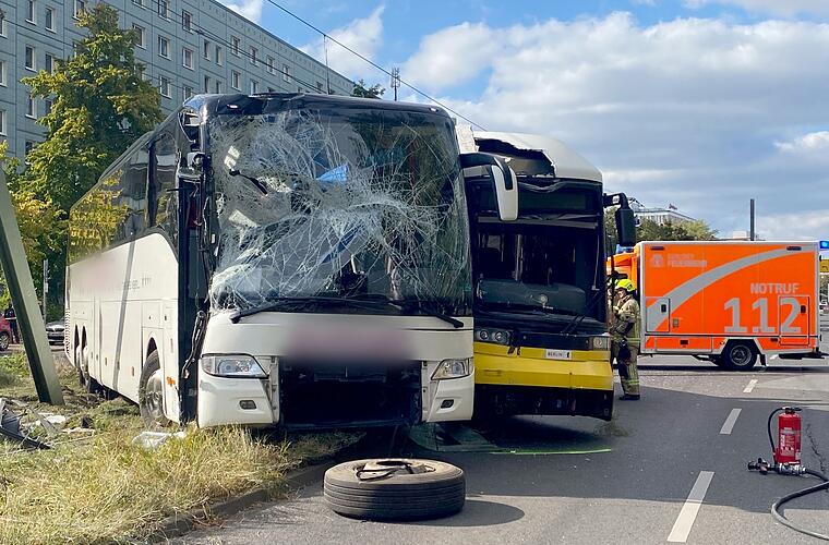Mehrere Menschen sind bei einem schweren Zusammenstoß einer Straßenbahn und eines Reisebusses nahe dem Berliner Alexanderplatz verletzt worden. Der Fahrer des ansonsten leeren Reisebusses sei schwer verletzt, sagte ein Sprecher der Feuerwehr. Zunächst sei der Mann vor Ort versorgt und dann in ein Krankenhaus gebracht worden.