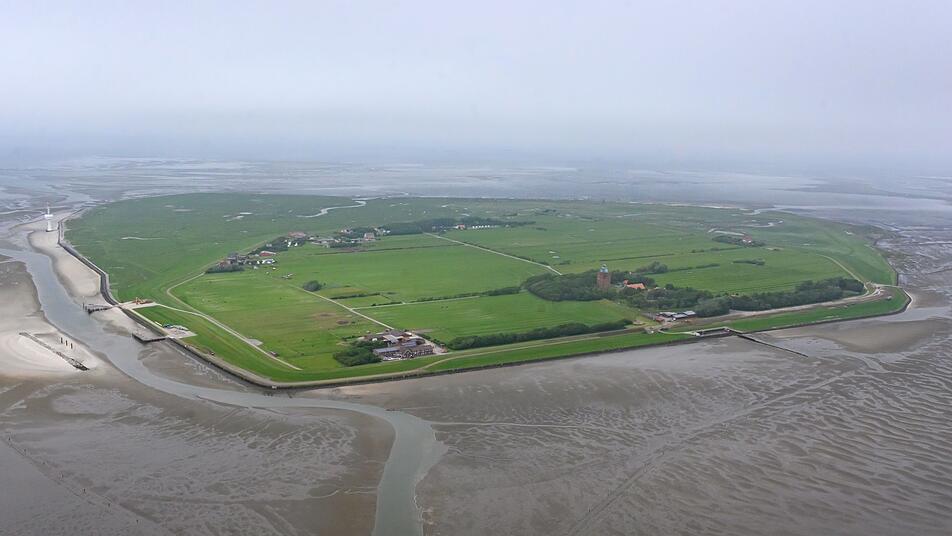 Als «Hamburger Juwel» bezeichnete Umweltsenatorin Katharina Fegebank (Grüne) die Nordseeinsel. Der etwa 120 Hektar große Inselkern ist von einem mehrere Meter hohen Deich umgeben.