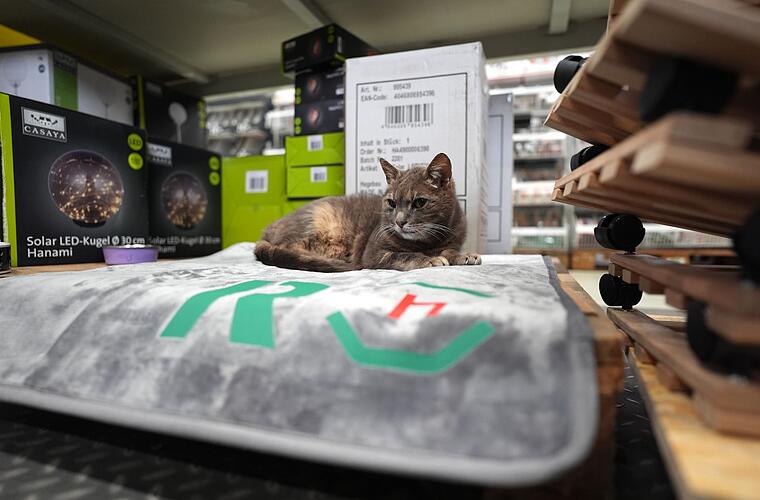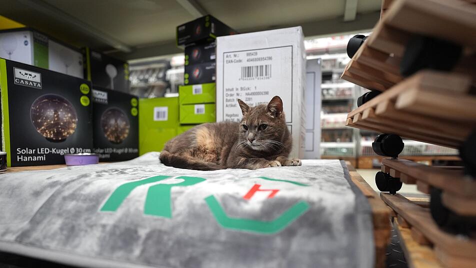 Seit dem letzten Sommer sei Lotti jeden Tag im Markt, streunere durch die Gänge - vorbei an Schrauben, Blumenerde und Glühbirnen - und lasse sich von den Mitarbeitern des Markts mit Leckerlis verwöhnen. Am häufigsten findet man die bereits 18 Jahre alte Katze allerdings auf ihrem Platz auf einer Decke zwischen den Regalen. Hier steht auch ihr Futternapf.