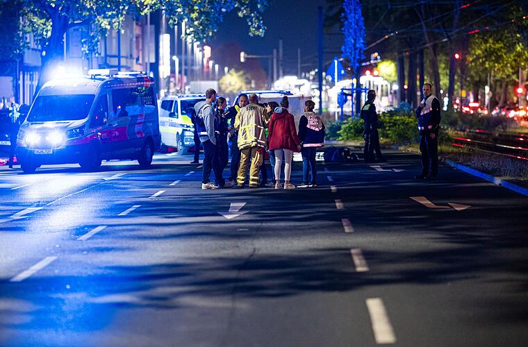 Zahlreiche, zum Teil schwer bewaffnete Einsatzkräfte sind vor Ort. Sie versorgten zunächst die Verletzten, sichern weiter Spuren und sprechen mit Zeugen. «Das dauert noch eine Weile», vermutete die Sprecherin der Polizei. Die Straße ist weitreichend abgesperrt, einige Haltestellen der Stadtbahn werden nicht angefahren.