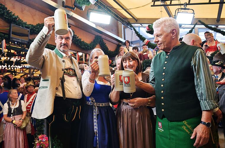 Söder zeigt Verständnis - auch dafür, dass Reiter etwas spritziger anzapfte als üblich: «Der runde Schlegel ist fies – da kann man leicht abrutschen», sagt er, der zum zweiten Mal in Lederhose zum Anzapfen gekommen ist. Aber: «Was kann es heute schöneres Parfum geben auf der Haut als Bier.»