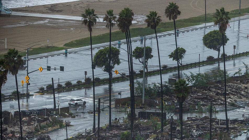 Heftige Regenstürme ziehen durch Südkalifornien. Die Behörden warnen vor Sturzfluten und Überschwemmungen. Betroffen sind vor allem ehemalige Brandgebiete in Los Angeles.