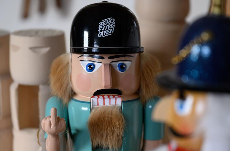 Wem zeigt der Nussknacker hier den Stinkefinger? Die Geschichte hinter der rebellischen Holzfigur aus Seiffen.