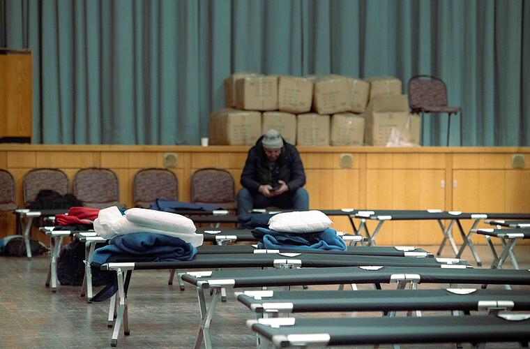 Die Wohnung seines Vaters etwa sei bereits so kalt, dass sich Feuchtigkeit bilde, sagt Frank Adameit. Deshalb habe er den über 90-Jährigen erst einmal hierhin gebracht. Der pflegebedürftige Mann sitzt neben seinem Sohn im Rollstuhl. Seit der Mittagszeit harren sie hier aus. Wie es in den nächsten Tagen weitergehen wird, wissen sie nicht. Er hoffe darauf, dass der Strom früher wieder fließt als Donnerstag, sagt Adameit.