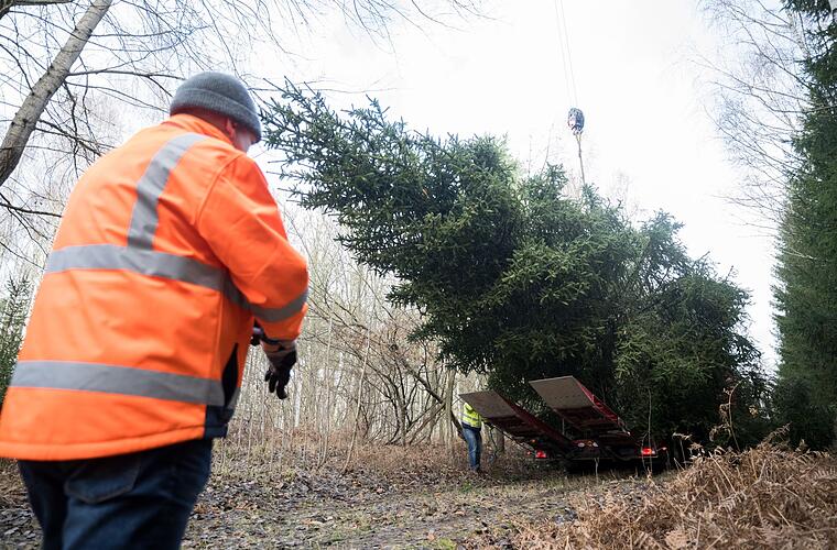 Die Fichte aus dem Eberswalder Stadtwald soll am Samstagmorgen mit einem Kran im Hof des Kanzleramts aufgestellt und am kommenden Mittwoch an Bundeskanzler Olaf Scholz (SPD) übergeben werden.