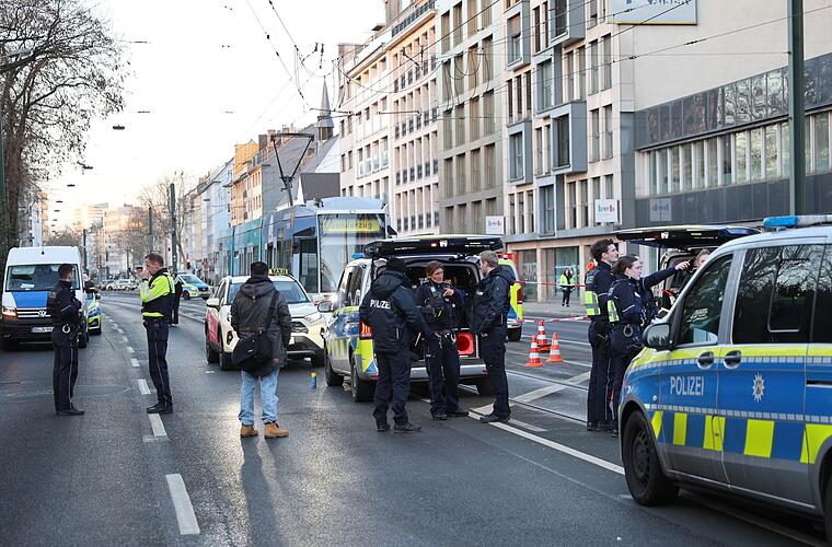 Mitten in Düsseldorf fallen auf einer Hauptverkehrsstraße mindestens zehn Schüsse. Ein Fahrgast eines Taxis wird schwer verletzt. Eine Mordkommission ermittelt.