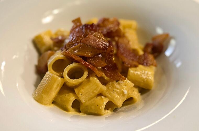 Tatsächlich findet sich das erste niedergeschriebene Carbonara-Rezept überhaupt in einem Buch, das 1952 in den USA erschien: in einem Stadtführer für Chicago («An Extraordinary Guide to What is Cooking on Chicago's Near North Side»). Dort standen die Nudeln in einem Restaurant namens «Armando's» so auf der Karte. In Italien dauerte es bis August 1954, bis die Zeitschrift «La Cucina Italiana» ein Rezept veröffentlichte - und dann auch noch mit der Empfehlung, Gruyère-Käse aus der Schweiz zu verwenden.