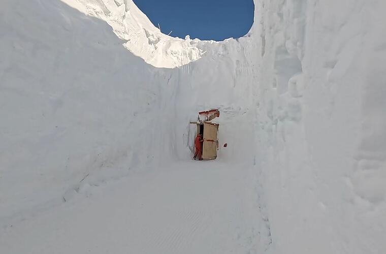 Die Proben vom Mont Blanc und dem Grand Combin lagern nun in der 35 Meter langen, 5 Meter hohen und 5 Meter breiten Höhle. Sie ist metertief in die Schneeschichten bei der französisch-italienischen Forschungsstation Concordia gegraben.