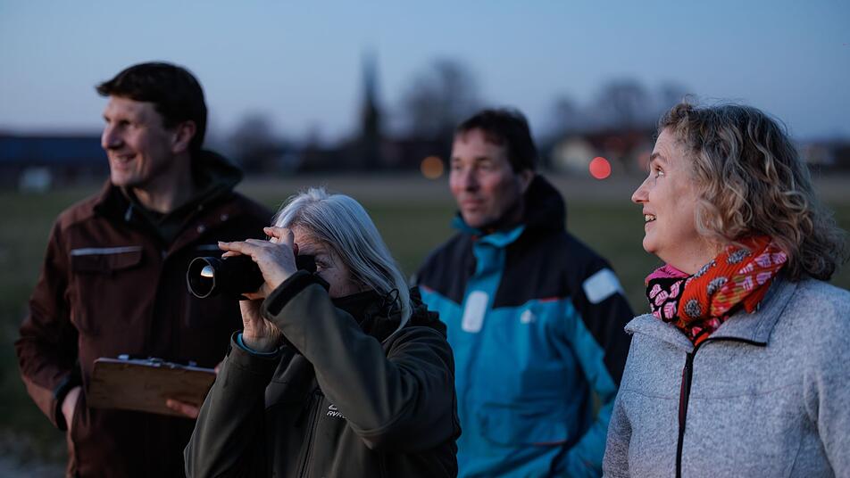 Hier ist besetzt! Das macht der Hahn mit seinem Krächzen Konkurrenten deutlich. Der Ton kommt allerdings aus einem Lautsprecher, den Marcel Holy in den Abendhimmel hält. Es handelt sich um eine akustische Provokation. Der Leiter der Natur- und Umweltschutzvereinigung Dümmer gaukelt Rebhühnern vor, dass da ein anderer Hahn in der Dunkelheit steht.