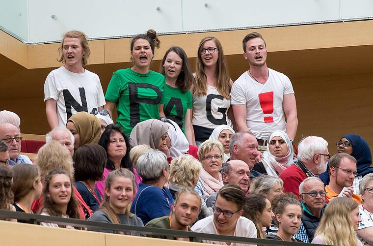 Im Landtag ging es gleich zu Beginn hoch her. Eine Gruppe von Jugendlichen protestierte lautstark auf der Besuchertribüne: "Wir sind hier, wir sind laut, weil ihr uns die Freiheit raubt." Landtags-Vizepräsident Reinhold Bocklet (CSU) ließ die Gruppe vor die Tür setzen - Demonstrationen sind im Plenarsaal nicht erlaubt. In der Münchner Innenstadt demonstrierten Schüler.