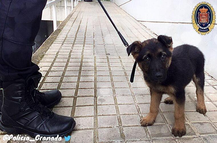 Die Polizei in Granada hat einen misshandelten Welpen adoptiert - und rekrutiert. Foto: Polizei Granada