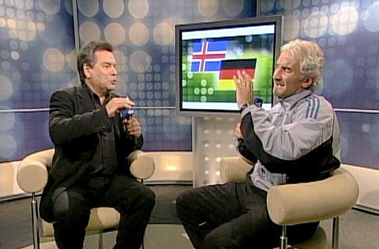 ARD-Moderator Gerhard Delling analysierte das Spiel wie immer damals mit Ex-Nationalspieler Günther Netzer und nannte es einen neuen "Tiefpunkt". Als kurz darauf Rudi Völler im ARD-Studio bei Waldemar Hartmann saß, konnte der damalige Bundestrainer nicht mehr an sich halten.