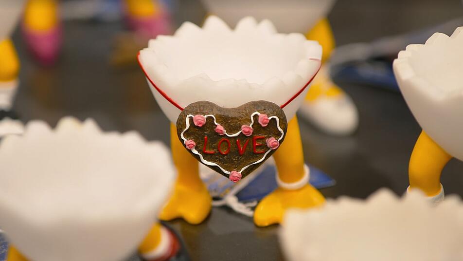 Der Fantasie waren bei der Firma Casablanca wohl kaum Grenzen gesetzt. So gibt es unter den "Freunden von Speedy" einen "Love"-Eierbecher, aber auch Figuren wie Gärtner oder Läufer. Kümmel stellte einige leichte Gebrauchsspuren fest, schätzte den Wert der Sammlung aber trotzdem auf 400 bis 600 Euro. Lichter: "Und das ohne Eier!"