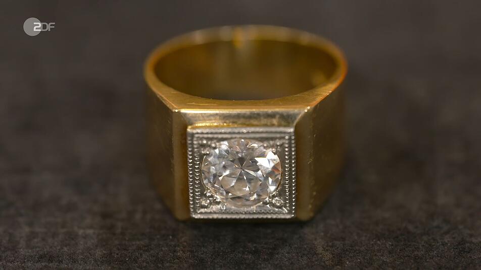 Horz schätzte, dass der Ring aus den 1950er-Jahren stammte. Er war aus Gold gefertigt "und sehr schwer, der wiegt 16 Gramm", so Horz. "Hui!", kommentierte Lichter beeindruckt. Die Punze verriet eine 585er-Goldlegierung. Der Diamant würde "eine sehr schöne Größe" aufweisen, fand die Expertin. Das Gewicht des Steins schätzte die Expertin auf 1,6 Karat. Insgesamt sei es ein für einen Schliff dieses Alters "sehr lebendiger Stein", schwärmt die Expertin.