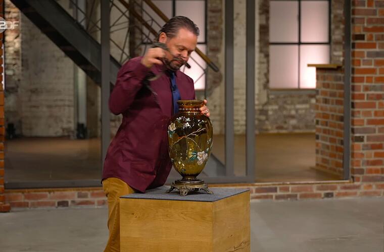 Blumenvase? Der Experte Colmar Schulte-Goltz widerspricht in der Donnerstagsfolge von "Bares für Rares" Horst Lichters Affront gegen eine Prunkvase. Händler Wolfgang Pauritsch belässt es nicht bei deformierenden Worten: Er demontiert das Schmuckstück!