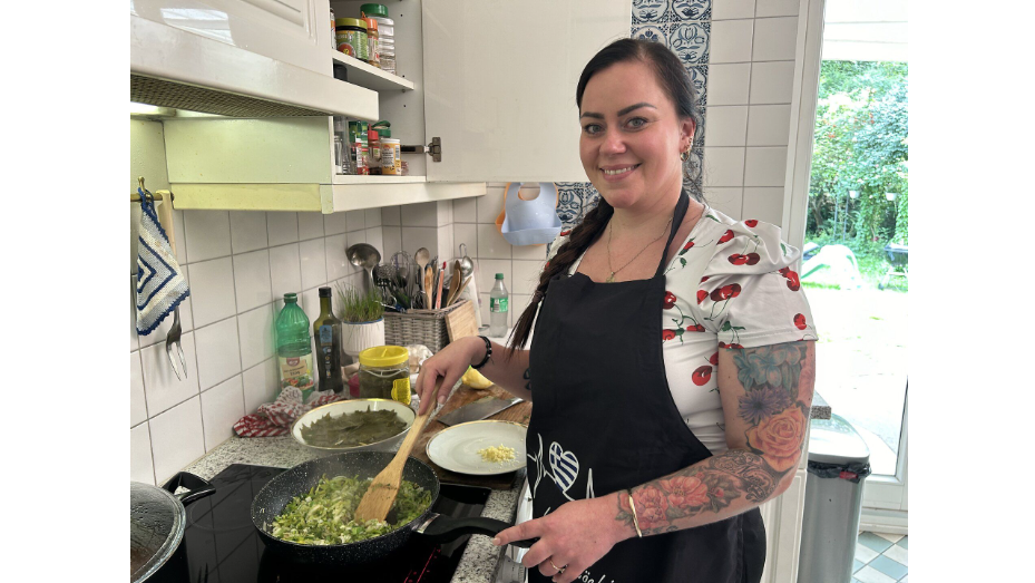 Die Hamburgerin Leandra, 35 Jahre alt, ist von Beruf Personalsachbearbeiterin in einer Klinik. Ihr Menü steht unter dem Motto "Futtern wie bei Muttern… auf Griechisch" und verspricht eine kulinarische Reise durch die traditionelle griechische Küche. Zur Vorspeise wird "Artemis‘ göttliche Appetithäppchen Mezedakia" serviert. Der Hauptgang umfasst "Athenas Ragout Stifado", ein klassisches griechisches Fleischgericht, das besonders durch seine Würze und Geschmacksintensität überzeugt. Abgeschlossen wird das Menü mit einer süßen Nachspeise, die den wohlklingenden Namen "Aphrodites süßer Traum Ravani mit Joghurt-Mousse" trägt.