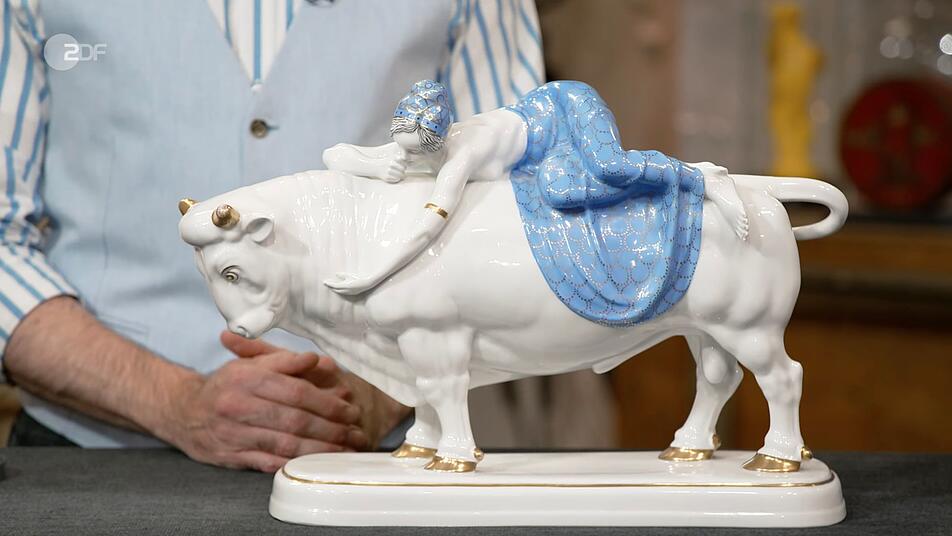 Die Plastik trug die Signatur von Carl Nacke, einem renommierten Künstler und Bildhauer aus Hannover, der unter anderem Entwürfe für die erfolgreiche Porzellanfabrik Fraureuth geliefert hatte. Laut der Bodenmarke stammte die Darstellung von Zeus und Europa aus der Zeit zwischen 1915 und 1926. Andreas' Wunschpreis für das Erbstück seines Vaters lag bei 500 bis 600 Euro. Zwar bemängelte der Experte leichte Abreibungen an der Vergoldung der Figur, schätzte den Wert jedoch ebenfalls auf 550 bis 650 Euro. Der Verkäufer zeigte sich erfreut über die Einschätzung und nahm die Händlerkarte dankbar entgegen.