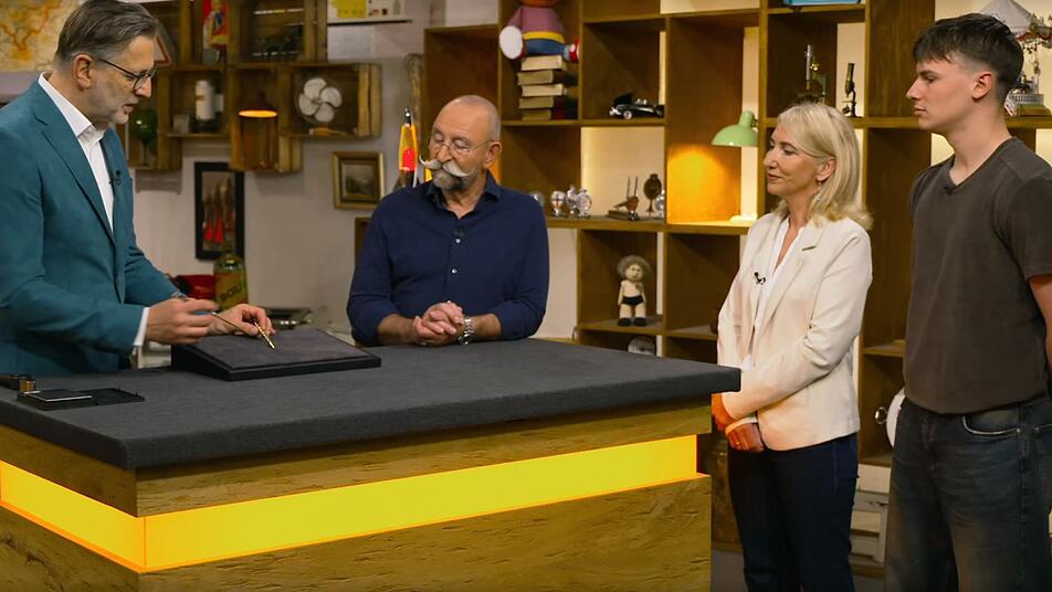 Verkäuferin Silke ist begeistert: "Wow, was wir da haben." Aber was ist das Schreibgerät aus den 1940er-Jahren wert? Kümmel schätzt auf 450 bis 600 Euro, auch wegen einer kleinen Delle und eines geringen Goldwertes. Aber das Händler-Interesse ist sofort geweckt. "Der ist ja süß", meint Liza Kielon und Jan Čížek wird hellhörig. Aber Waldi bietet zuerst.